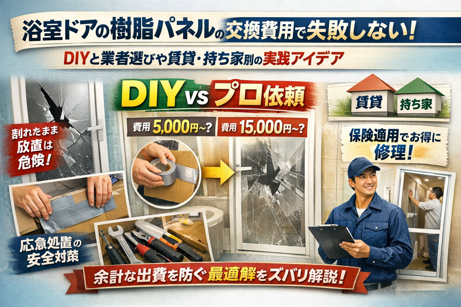 お風呂のドアが割れた際の修理代と保険やDIY・賃貸での負担が一気に分かる!知らなきゃ損するお得な対処法